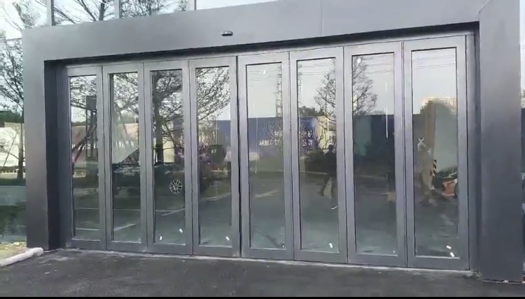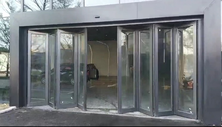 電動折疊門是用于車間廠房、倉庫等地方的大門,常常在墻體洞口兩側和頂部空間位置不夠的情況下,獨特研制的一種新型門體,可分為四扇折疊,六扇折疊等多種形式。此門體具有 :手動、電動、遙控、防沙塵、耐腐蝕等性能